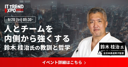 株式会社イノベーション(東証グロース 証券コード3970)のグループ会社である、株式会社Innovation & Co(本社:東京都渋谷区、代表取締役社長:齊藤和馬、以下「Innovation & Co」)は、業界最大級のオンライン展示会「ITトレンドEXPO2024 Summer」を、2024年9月18日(水)~ 9月20日(金)に開催します。併せて、国士舘大学体育学部 教授 鈴木 桂治 氏の講演内容が決定したことをお知らせします。
