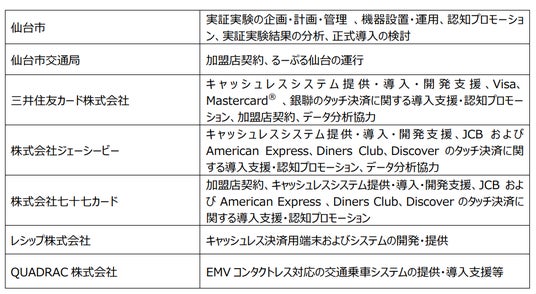 仙台市(宮城県仙台市、文化観光局長:柳津 英敬)、仙台市交通局(同、交通事業管理者:吉野 博明)、三井住友カード株式会社(本社:東京都江東区、代表取締役社長:大西 幸彦)、株式会社ジェーシービー(本社:東京都港区、代表取締役兼執行役員社長:二重 孝好)、株式会社七十七カード(本社:宮城県仙台市、取締役社長:鈴木 広一)、レシップ株式会社(本社:岐阜県本巣市、代表取締役社長:杉本 眞)、QUADRAC株式会社(本社:東京都港区、代表取締役社長:高田 昌幸)は、2024年10月1日(火)より、仙台市観光シティループバス「るーぷる仙台」において、三井住友カードが提供する公共交通機関向けソリューション「stera transit」を活用した、タッチ決済対応のカード(クレジット、デビット、プリペイド)やカードが設定されたスマートフォン等による乗車サービスを開始することについて、以下の通りお知らせします。