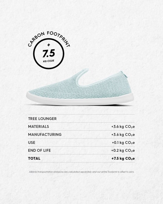 「Allbirds」では2020年4月より、全製品においてカーボンフットプリントを表示。製造過程における排出量ゼロを目指すと共に、食品のカロリー表示のように、「地球のためにCO2e排出量を知る」が当たり前の世の中をつくります。