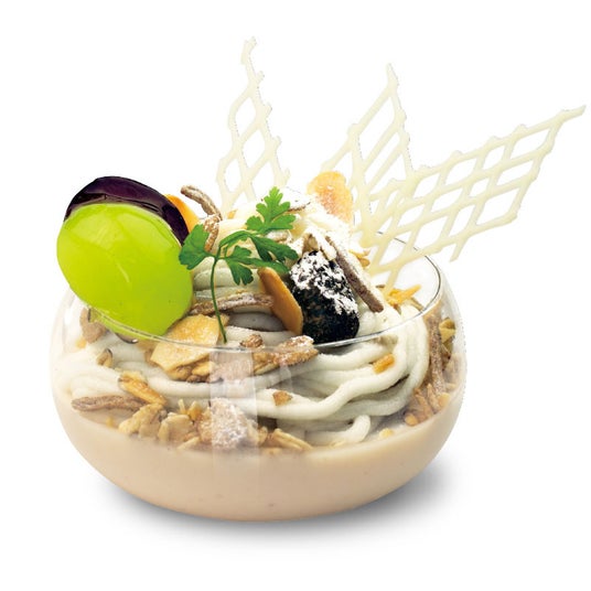 細かく砕いたナッツとキャラメルソースが入ったふんわりヨーグルトムースに、塩を加えました。香ばしいナッツの食感とほんのり塩味を感じるヨーグルトデザートは40周年記念イベント第三弾限定で新登場。