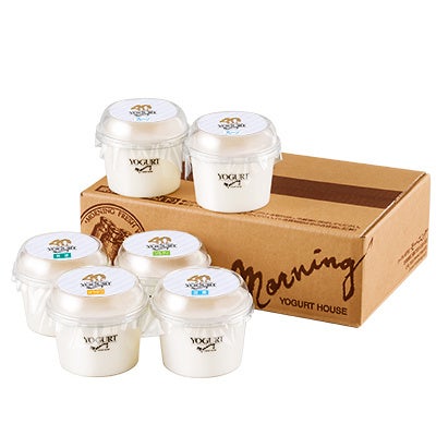 「プレーンパレットギフト6個詰合せ」の内容は、定番の「プレーン」「加糖」のほか40周年記念で新登場した「微糖」「ソルティ」「はちみつ」の3種です(いずれも200gタイプのヨーグルト)。プレーンヨーグルトをベースにひと手間かけた5種それぞれの味を食べ比べして、プレーンヨーグルトの魅力を楽しみませんか? モーニングのベーシックな味わいが楽しめる、はじめての方にもおすすめの詰合せです。ぜひこの機会に、モーニングのオリジナルヨーグルトの食べ比べをお試しください。
