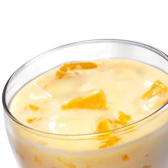 定番ヨーグルトを濃厚でクリーミーなヨーグルトを使ってとっておきの味わいに仕上げました。濃厚な味わいのマンゴーヨーグルトに特製のマンゴープリンとナタデココを合わせました。