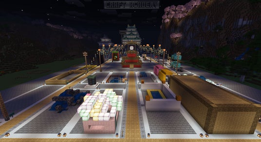金魚すくいなど様々な作品を「Minecraft Education」のワールドの中でデザインしました。