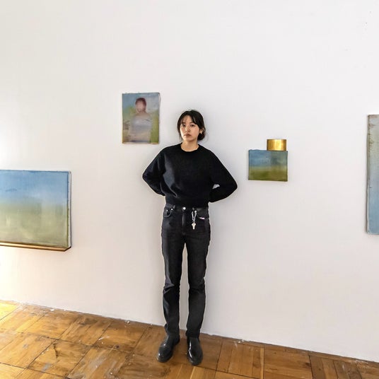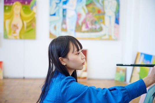 角田笑香は、人物画を中心に描き、絵画自体は物質であるという事実と具象的なモチーフを描くことで立ち現れるドラマ性を融合させた作品を制作しています。