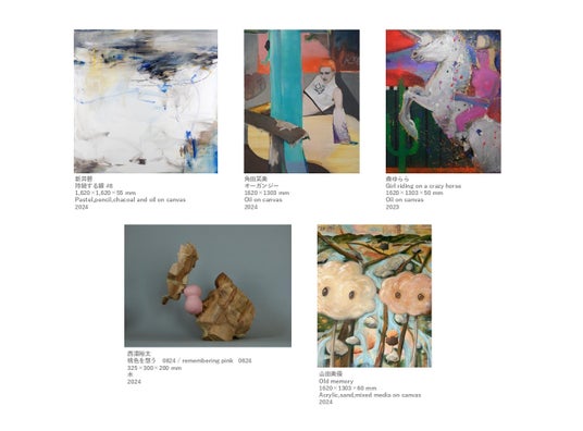 本展は、作風もコンセプトも全く異なる芸術家たちが「交差する」場です。2023年6月に第1回目を開催し、今回が第2回目となります。今回は、新井碧、五十嵐大地、角田笑香、那須佐和子、西浦裕太、フカミエリ、ペロンミ、森ゆらら、山田美優、弓月の10名が参加します。