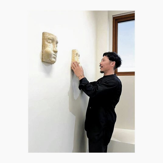 山田美優は、時代や社会の流れの狭間に生きる者を投影した作品を制作しています。現代人の持つ独自の浮遊感、つかみどころのなさといったものを捉え、都市と自然の中間的存在として砂状の素材を用いています。