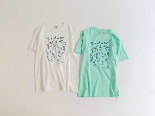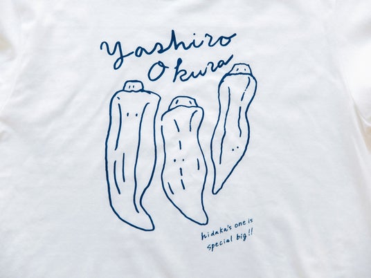 豊岡・日高にある八代地域の名産品で、大きなサイズが特徴的な「八代オクラ」をデザインしたTシャツ。地元の特色を生かしたユニークな一着です。キッズデザインも。サイズ展開はM~XXL。