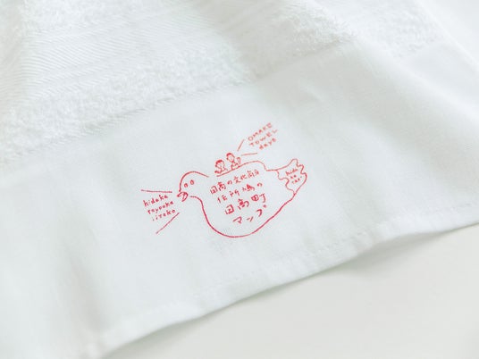 豊岡・日高の駅周辺を楽しく散策できるマップと、散策中に役立つタオルがセットに。観光に訪れる方はもちろん、地元の方々にもおすすめの商品です。