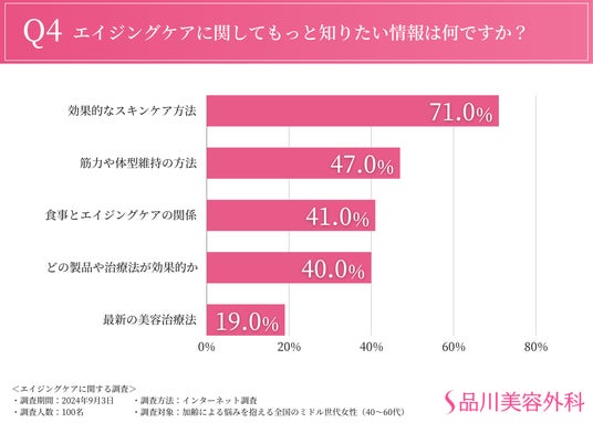 次に、エイジングケアに関してもっと知りたい情報は何なのか伺ったところ、「効果的なスキンケア方法(71.0%)」と回答した方が最も多い結果となりました。