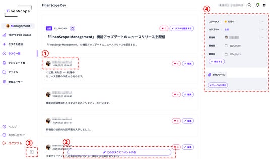 - 左サイドバーを開閉式に変更・「タスク一覧」「テンプレート集」などの左サイドバーをアイコンのみで表示できる開閉式に変更。タスクの内容をより大きな画面で表示可能に。