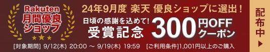 楽天月間優良ショップ受賞を記念して、300円OFFクーポンを配布決定!