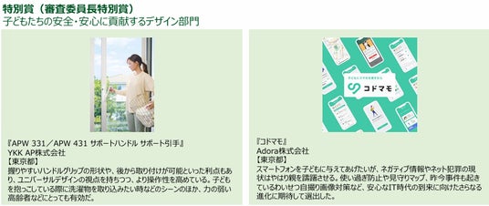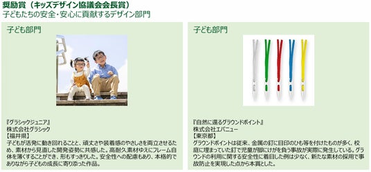キッズデザイン協議会※1 は、子どもの安全・安心と健やかな成長発達に役立つ優れた製品・サービス・空間・活動・研究などを顕彰する「キッズデザイン賞」の第18回優秀作品にノミネートされた33作品の中から、最優秀賞、優秀賞、奨励賞、特別賞を発表しました。