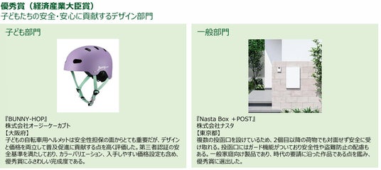 【部門】《子どもたちの安全・安心に貢献するデザイン》・・・ 59点子どもの安全・安心に寄与する製品、サービス、建築・空間、活動、研究など。子ども向け、あるいは一般向けの製品、サービス、建築・空間、活動、研究において、安心・安全に配慮されたもの。