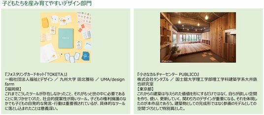 キッズデザイン賞は、子どもや子どもの産み育てに配慮したすべての製品・サービス・空間・活動・研究を対象とする顕彰制度です。
