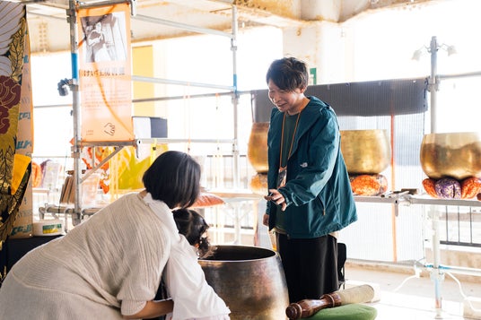 石川県の伝統工芸体験/石川県伝統産業青年会議、皿・カップ絵付け体験/雲善窯、スプーンづくり/工房HARUBARU、お箸づくり/ZackaryKitchen、端材をデザインする木工ワークショップ/S.U.Ntriangleproducts、木の枝から色鉛筆削り/SimpleClassic101、チタン発色体験/新和メッキ工業、土や菅に触れる体験/素のもの研究所、金属を叩くワークショップ/瀬尾製作所、木育ワークショップ/チューモク、帰ってきた鋳物ガチャ/道具、転写シールを貼ってみよう/ttyokzkceramicdesign、ポンポン&タッセル栞づくり/文苑堂書店、お宝発掘&加工体験/平和合金、オサカナスクイ/MORIMO、和綴ノート作り体験/山田写真製版所、まげまめ皿ワークショップ/能作、らでんワークショップ/らでん工房おりはし、スツールづくり/ルーティヴ、DJ ブース、大道芸人 ブンブク