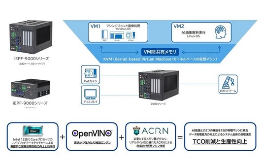 また、「Intel VT」による仮想化テクノロジーにより、物理マシンの統合が可能になり、「OpenVino」によるAI処理性能の向上や「ACRN」によるリアルタイム性に優れた仮想マシン技術も加わっています。