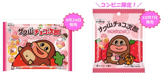 甘酸っぱくフルーティーないちごミルク味のチョコビスケット『サク山チョコ次郎 いちごミルク味』がお馴染みのファミリーパックに加え、今年はコンビニ限定で小袋サイズも発売します!