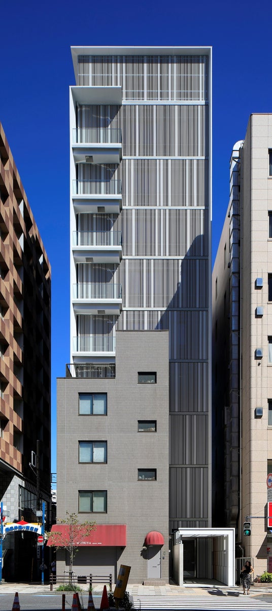 ~三田通り沿いに佇む、モダンな配色のルーバーを施した外観が特徴的なオフィスビル~