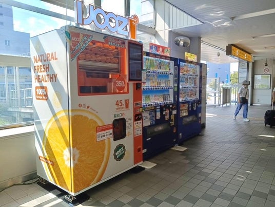 生搾りオレンジジュースの自動販売機を展開するIJOOZ(アイジュース)株式会社は、2024年8月20日から大阪モノレール「阪大病院前駅」で、生搾りオレンジジュース自動販売機の稼働を開始しました。