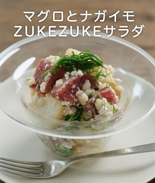 漬け鮪を使った簡単アレンジレシピ。相性の良いシャキシャキした長芋と、もちっとモチ麦の食感がお口の中で絶妙なハーモニー。チーズのコクを加えれば、贅沢風味の新感覚サラダに。