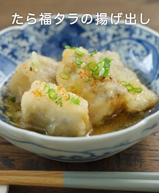 揚げたてのタラをお出汁につけ込み、アツアツが美味しい揚げ出汁料理。 ホクホクのタラが心も身体も癒してくれます。色々なお野菜と一緒に、お鍋感覚で味わってください。