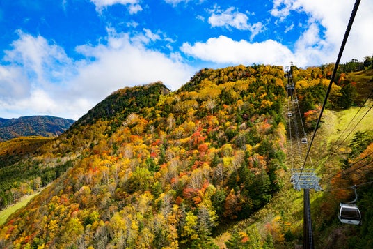 奥日光のなかでも最も標高の高い日光白根山では、9月下旬ごろから紅葉が始まります。標高約2,000mの山頂駅までは、ロープウェイで約15分。ロープウェイ乗車中の紅葉は10月上旬から中旬が見頃です。
