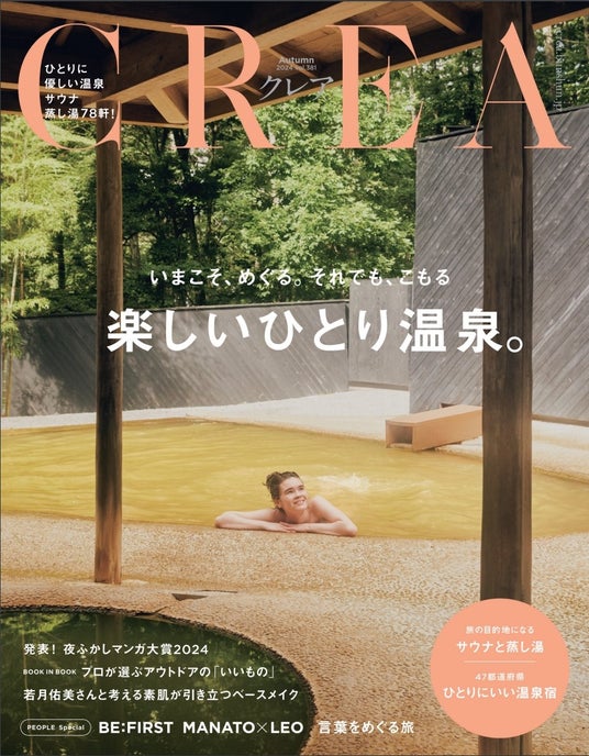 株式会社文藝春秋(本社:千代田区紀尾井町 社長:飯窪成幸)は、9月6日に『CREA』2024年秋号「楽しいひとり温泉。」特集を発売しました。