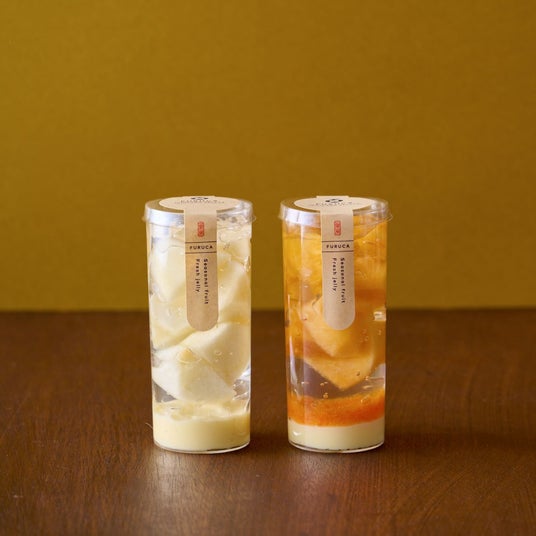 『ふるか』は、旬のフルーツとゼリー、カスタードの相性が抜群のスイーツです。フルーツ本来のおいしさをゼリーと一緒に味わうことができ、下には味のアクセントとなるフルーツと相性の良いカスタードが入っており、食べ進めるごとに異なる味わいをお楽しみいただけます。