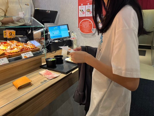 「お互いさまチケット」を利用することで、食事代からチケットに記載されている金額分割引される仕組みです。お互いさまチケットが説明されたボードやお互いさまチケット等中国語のみならず日本語等でも表記されており誰でも利用しやすいように配慮されています。