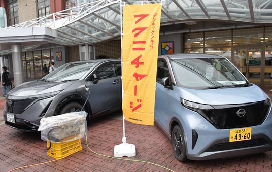 福島日産自動車株式会社(以下福島日産と略、本社:福島県福島市、代表:金子 與志幸)は、2024年9月22日(日)に福島駅(福島県福島市)で開催された「とっておきの音楽祭 in ふくしま 2024」へ協賛いたしました。日産サクラ・日産アリア・セレナLV(*)の展示に加え、近距離モビリティ『WHILL』の試乗を実施。日産アリアからステージ上の音響設備や出店ブースへの給電を行いました。