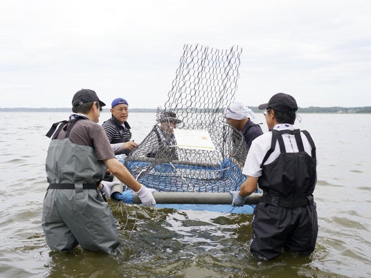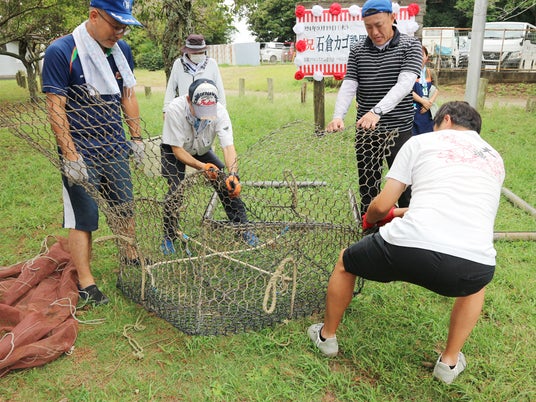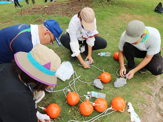 パルシステム生活協同組合連合会(本部:新宿区大久保、理事長:大信政一)は9月19日(木)、茨城県涸沼(ひぬま)ほとりの親沢公園キャンプ場(東茨城郡茨城町)で「石倉カゴ」の設置記念式典を開催しました。パルシステム茨城 栃木の組合員や役職員、茨城県など行政や地元の漁協、自然保護団体、産直提携産地の生産者など62人が参加しました。