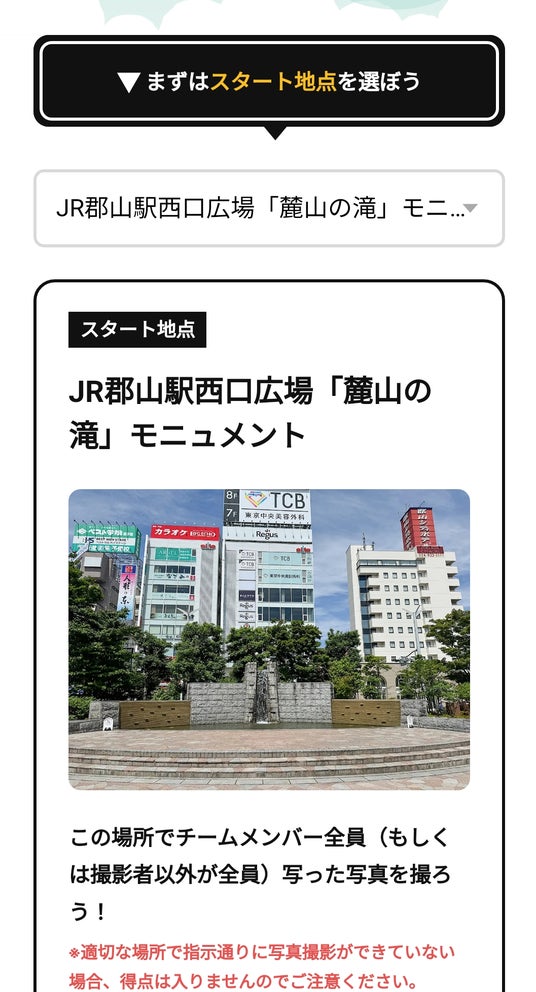 (1) 開成山公園管理事務所又はこおりやま観光案内所(郡山駅構内)でパンフレットを入手し、記載の二次元コードをスマートフォンで読み取りスタート。(制限時間:2時間30分、参加無料)