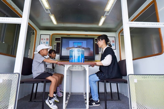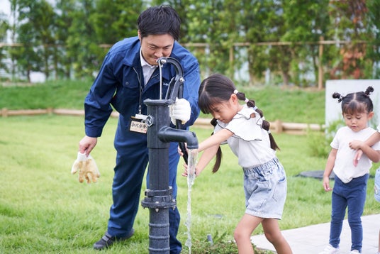 第2部の防災体験会では、起震車による震度7体験、消防車の乗車体験、井戸掘り体験などを行いました。震度7体験では東日本大震災と同等の2分間の揺れを体感。「テレビで見るのと実際に体感するのでは、恐怖感が違う」といった感想がありました。子どもたちに人気だったのは井戸掘り体験。「井戸を初めて触った」という子どもも多く、掘削機を一生懸命回す姿が見られました。
