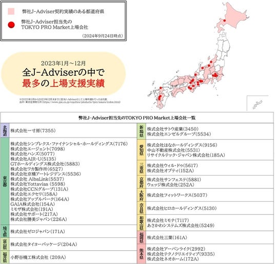 日本M&Aセンターでは、企業成長のさらなる促進・円滑な事業承継・一般市場への上場に向けた体制整備を目的にTOKYO PRO Marketへの上場支援に取り組んでおり、既存上場企業含め全国で100社以上のJ-Adviser契約実績があります。