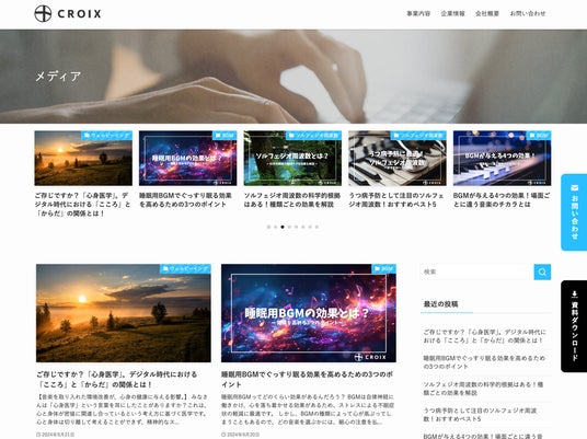 私たちクロアはウェルビーイング・テクノロジーカンパニーとして、各分野のスペシャリストとの連携、企業様との監修コラボ音楽、音源・映像制作をはじめ癒やしのグッズ制作から販売などを行っております。