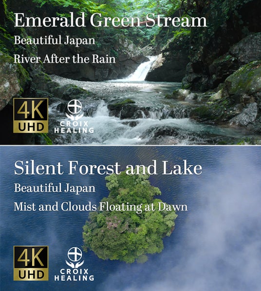 磐梯山の噴火によって生まれた裏磐梯の湖沼群。その浮かぶ島々は、視点を変えると異世界を旅しているかのような風景に見えます。最大の湖である秋元湖の夜明けから、地形の歴史が始まった磐梯山までの旅へと誘います。使用されている楽曲は、音楽療法の第一人者・和合治久博士監修のソルフェジオ周波数963Hzの音楽。自律神経を調和させ、心身のバランスを整える音楽です。