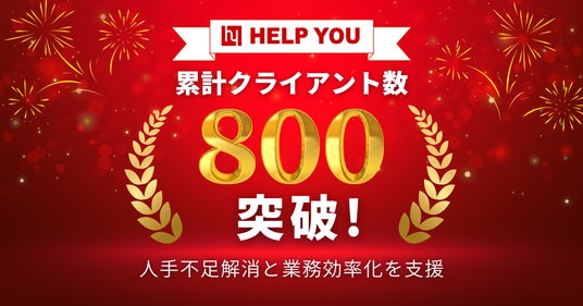 このたび、HELP YOUの累計クライアント数が800社を突破しました。これからも企業の人手不足解消と業務効率化に貢献してまいります。
