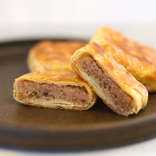 江戸時代の創業より守られる伝統の「自家製餡」は、豆を素材から仕入れ、茹で上げ、丁寧に皮を剥く「なま餡」を作る所から始めます。この「なま餡」から自家製餡を行う菓子店は、手間がかかる上に特殊な設備も必要な為、実に全国の1割の菓子店しか行っていない工程です。練りこむくるみは世界的に高品質と評価されるカルフォルニア産のくるみを生で仕入れ、自家焙煎し餡に練りこみます。パイ生地には日本のバターよりも豊潤な旨味が愉しめるヨーロッパ産発酵バターを使ったパイ生地を使用。毎日焼きたての美味しさをお客様に提供できるよう、冷凍を一切せず店舗に届けるこだわりも。