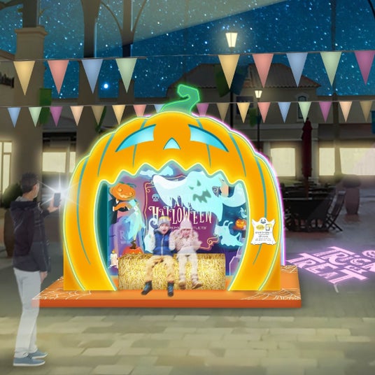 巨大なかぼちゃのジャック・オ・ランタンの口の中に入ることのできるフォトスポットや、ムービングライトで動き回るゴーストや魔女、フラッシュプリントを使用しフラッシュ撮影でゴーストたちが浮かび上がる不思議な仕掛けなど、怪しくも楽しげなハロウィーンムードを演出します。つい写真を撮りたくなるような、昼と夜で表情が変化するフォトスポットです。