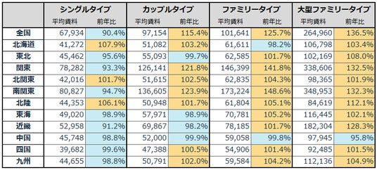 カップルタイプの全国の平均賃料は115.4%と上昇傾向にあります。