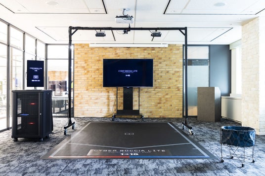 今回設置されたのは「サイバーボッチャ」をより手軽に体験できるLITE版で、「サイバーボッチャ」の美しいビジュアルやセンシング機能はそのままに、フレームやコート、ボッチャボール台などを簡易化し、導入しやすい価格帯で提供されています。