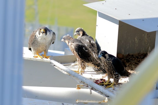 新仙台火力発電所周辺には、国内希少野生動植物種であるハヤブサが生息しており、生物多様性への配慮の観点から、発電所の煙突に人工の巣を設置し、野生のハヤブサの生育環境の保全に取り組んでおります。10年目の節目となる今年は、3羽のひなが誕生し、全羽無事に巣立っていきました。