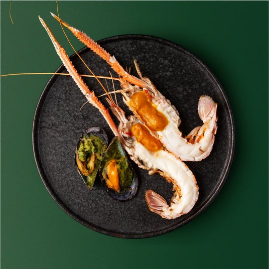 弐の重では国内外の厳選した新鮮な魚介が溢れ出す“海の幸"をテーマに。「駿河産赤座海老」や「紅ズワイガニ」などの贅沢な食材に、イタリア伝統料理「真鰯のベッカフィーコ」など沢村ならではの欧風のアレンジを取り入れた料理をお楽しみいただけます。