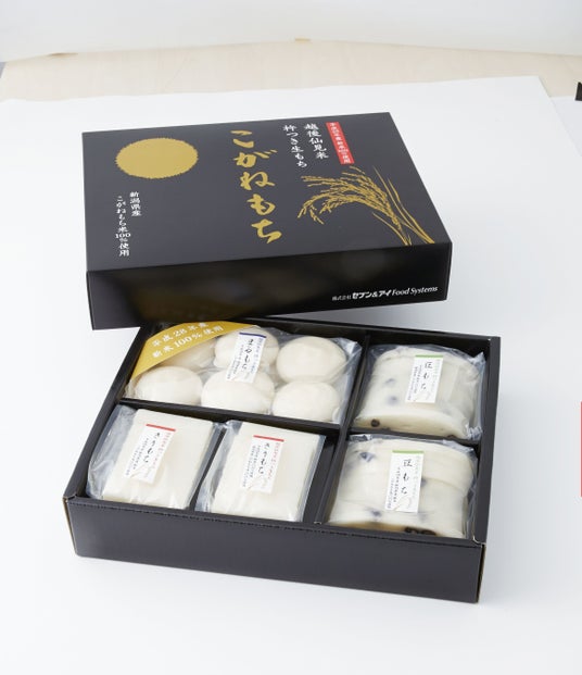 越後連山のふもと、清流「仙見川」の流れに恵まれた新潟県五泉市産の「越後仙見米」を100%使用しました。仙見川の流域は昼夜の寒暖差が大きく、土も水はけの良い砂礫土壌で、おいしいもち米が育つ環境が整っています。「特別栽培米こがねもち」は、高品質な越後仙見米の中でもさらに生産農家を限定し、特別栽培米の一等米のみを使用した限定品です。