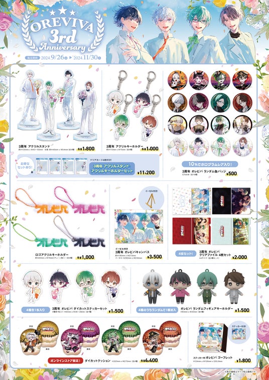 グッズ販売プラットフォーム『TOSTA』の「オレビバ公式ストア」と池袋 P'PARCO『WOAT』にて、3周年記念オリジナルグッズグッズを9月26日より販売開始!