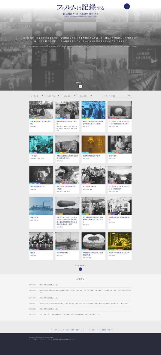 当館の所蔵コレクションを配信する4つ目のWEBサイトとして2023年3月31日に開設し、これまでに日本の文化・記録映画176作品を公開しておりますが、新たな作品が加わることにより、時代の鏡としての文化・記録映画の姿を、より鮮明に体験していただけることでしょう。