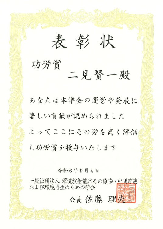 写真:2024年9月4日 福島県いわき市で開催された第13回環境放射能除染研究発表会での表彰式