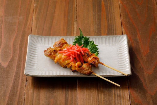 若鶏西京焼串西京味噌に漬け込み柔らかく仕上げました。味噌の風味と香ばしさが癖になる、焼き目までおいしさそそる京の味です。