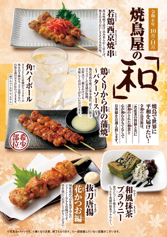 ~10月1日より、期間限定メニュー『焼鳥屋の和』第2弾として全4品が登場~