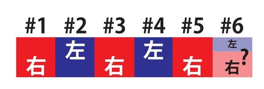 *規則性:「右→左→右→」と5番目まで来たら、あなたは6番目はどっちが来ると思いますか?これが規則性を作って、相手に次を予測させる規則性を利用した戦略です。